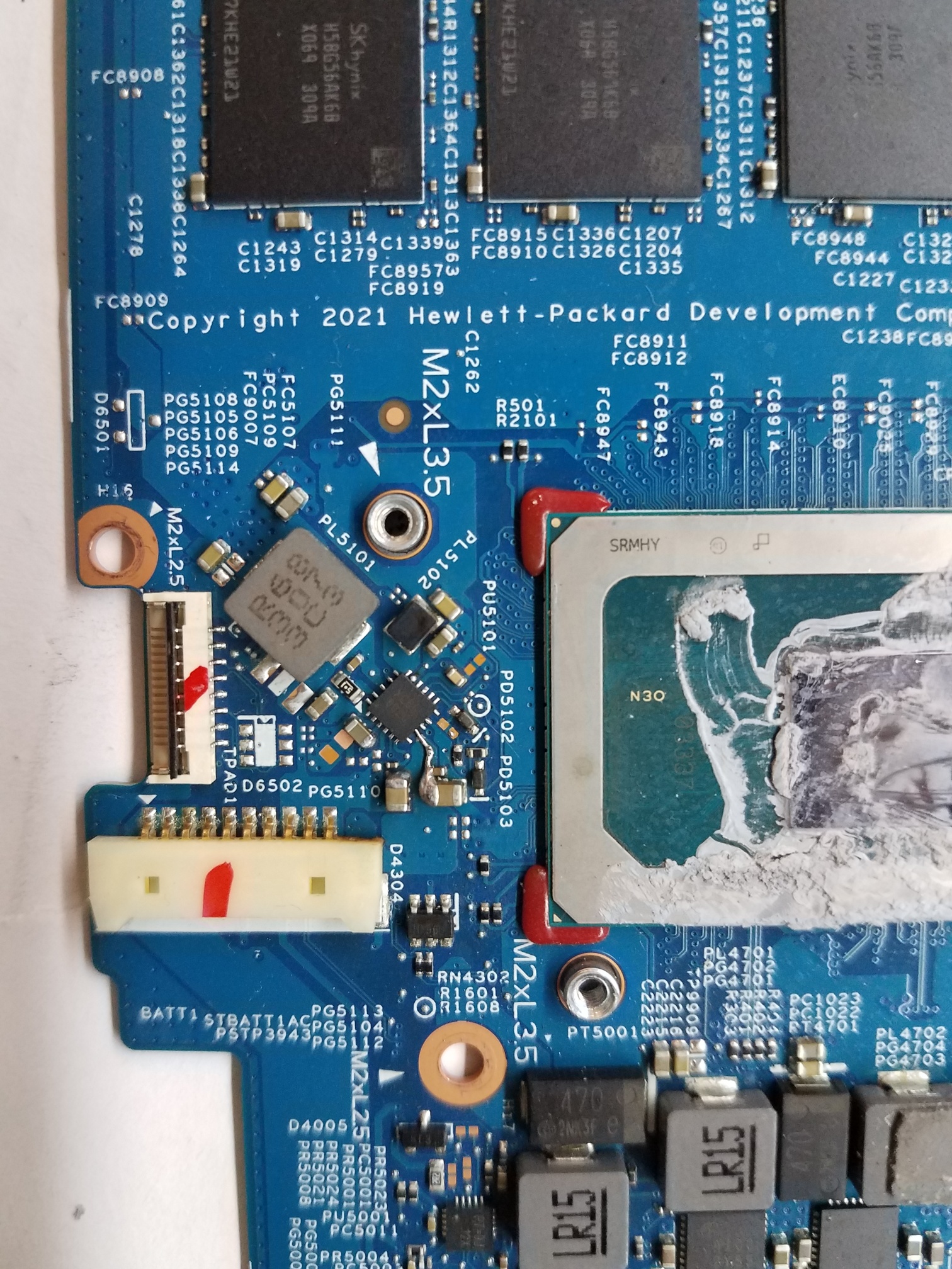 有在修223077-1这个板的老板帮测量一个点的阻值,就是内存供电芯片上面的PD5102下面的圆圈测试点。帮测测这个点的阻值,这个是内存供电开启。