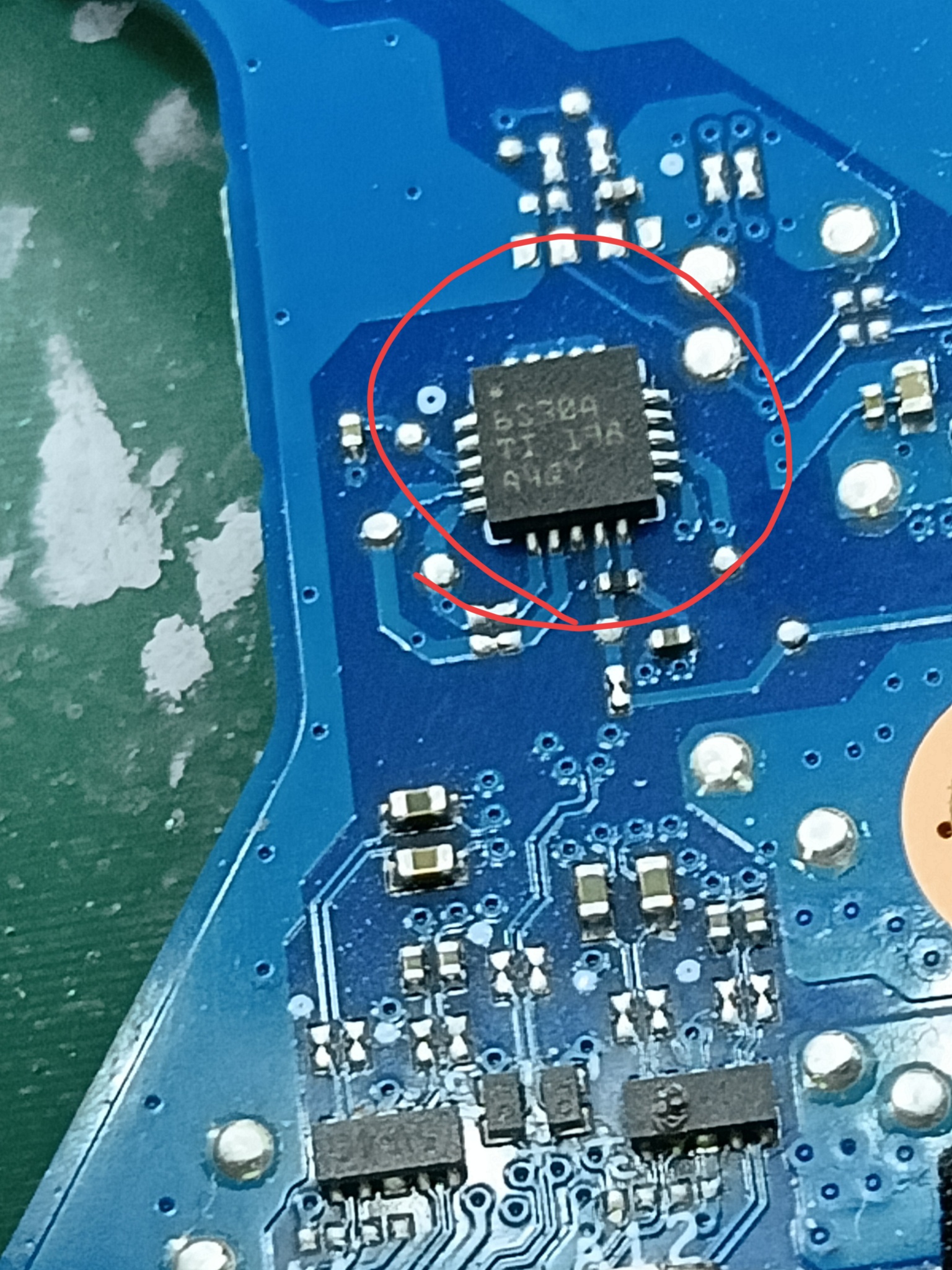 小米NB2766不升压,换了TPS65994之后能升压但是不开机,偶尔能充电,红圈标记的芯片换个原厂的就可以最好搬料板