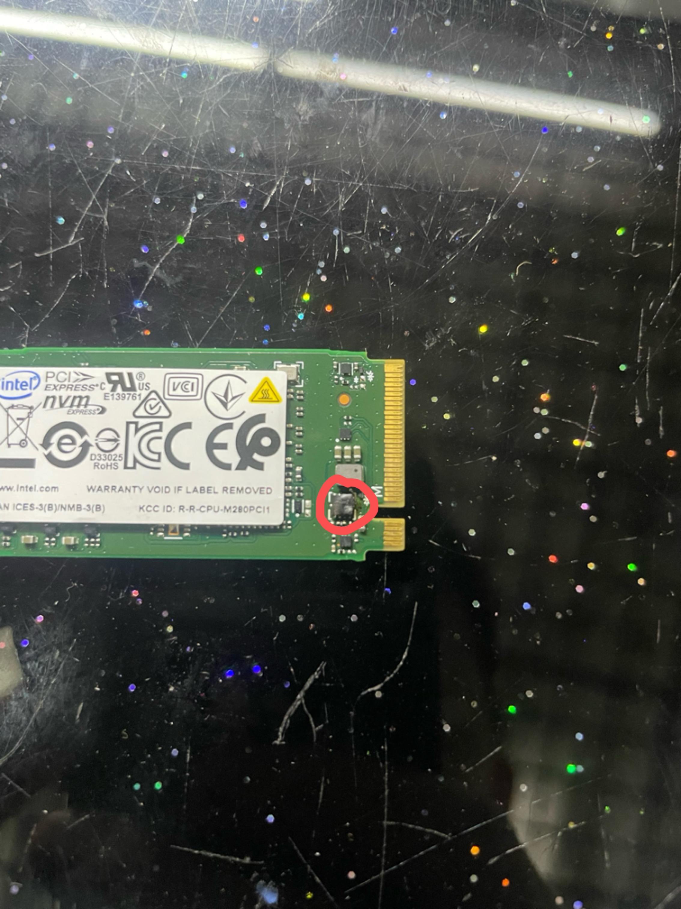 芯片烧糊看不清,哪位大佬有这个硬盘在身边么?帮忙看看这个芯片型号或者丝印
