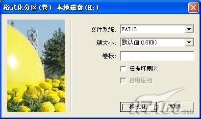 4. 可以快速格式化FAT12、FAT16、FAT32、NTFS分区.格式化时可设定簇大小、支持NTFS文件系统的压缩属性;