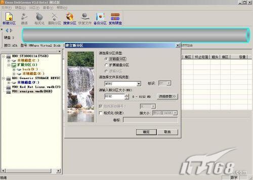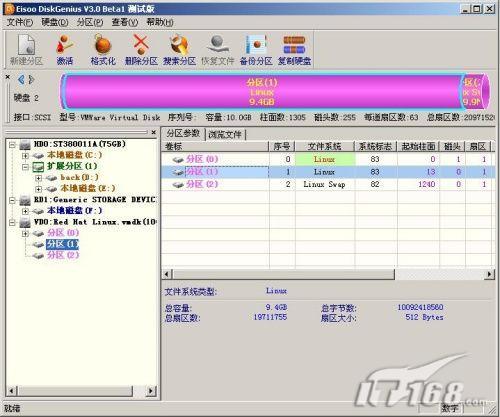 Eisoo DiskGenius 3.0还有一个更突出的亮点,那就是支持VMWare虚拟硬盘,可以新建VMWare虚拟硬盘,并进行分区管理等功能操作,具体方法与普通硬盘分区类似。
