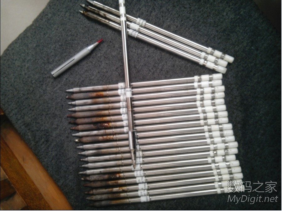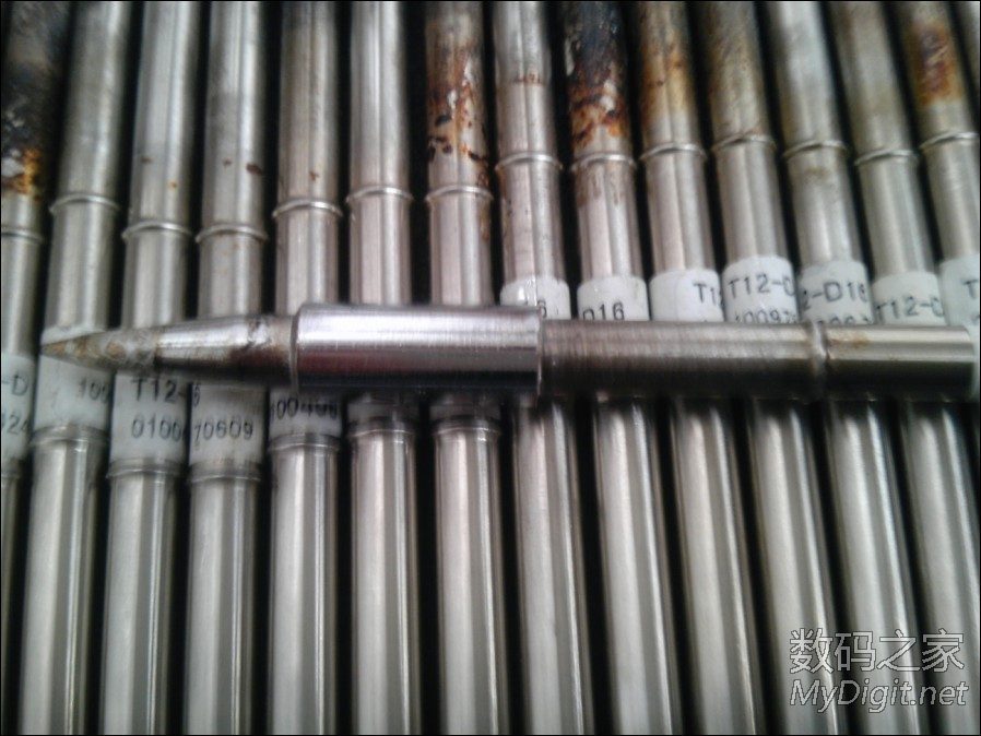 T12一到,立马挑一个废掉的磨去头,出去电子店逛一圈,找了两个头子,回来量好锯开打磨好,填上硅脂,套上,完工,9秒左右化锡,比较给力