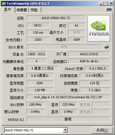 显卡原正常使用。(核心频率 325MHz / 显存频率 550MHz)