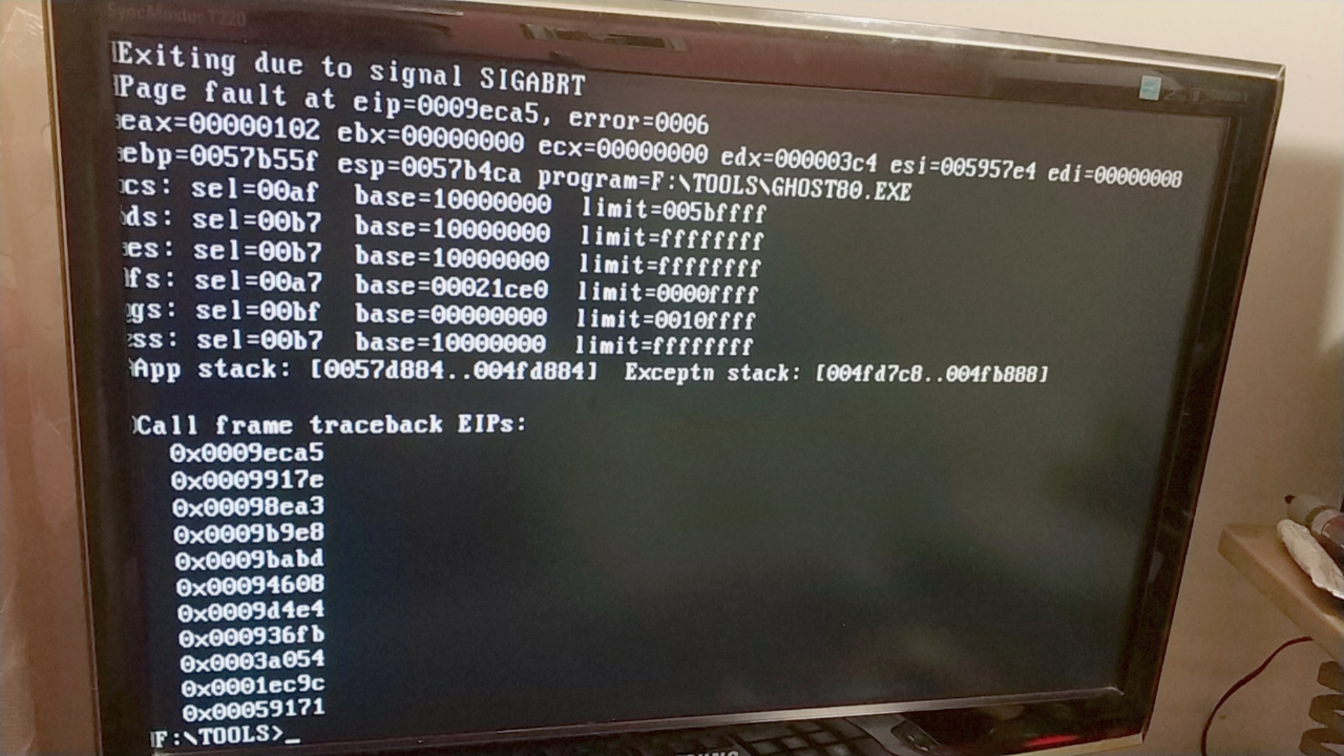 技嘉GA-7XIE,淘来的老板子,配齐老配件,开机,成功点亮,看似一切正常,上硬盘,BIOS能正确识别,图一,老硬盘无坏道,装的wimme系统,开机显示到winme的开机界面,提示错误图二,winme可是换平台不用重装系统的,抱着试一试的心理,重新ghost一遍系统,又提示图三,到此还有有一线希望,万用表测量ide到南桥的电阻,正常正常很正常,到此才有点懵B,观察ide到南桥无断线,既然能识别硬盘,南桥虚焊的情况可能性很小了,ide线换了几根,也不管毛用,到此彻底懵B,求大佬指条明路,下一步该怎么搞,有什么思路再搞一搞,谢了。