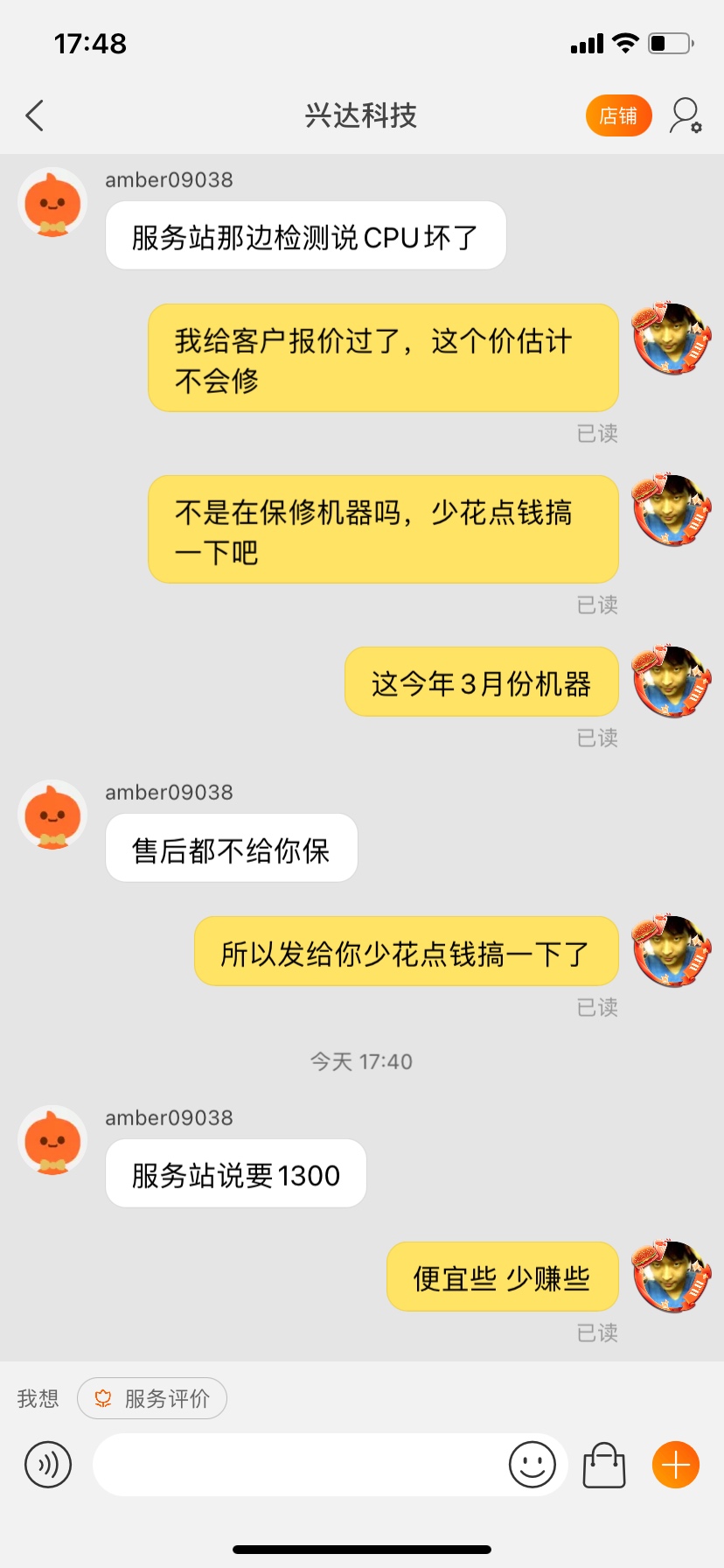 这个配置交换200元,这种话你都信,就这个配置修个大短路都不会低于500,这要是在学校附近都是收费1K以上,这不是跟自己接待客户是一样的吗,低价钓鱼,来了再抬价,怎么算商家都不会亏,亏的是客户,你这种就是属于被人低价钓鱼了,修就是1300,不修就是料板一块,花钱买教训,他们这种套路网上搞搞客户也就罢了,你也算是维修人员,这种低级的当也能上钩,论坛的帖子写了N多个上当案例,没人看的吗?
